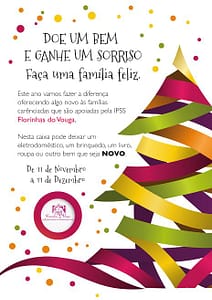 A Comissão de Voluntariado da IPSS Florinhas do Vouga, vai iniciar uma Campanha de Angariação de Bens Novos de 11 de novembro a 11 de dezembro. A Recolha dos bens será para entrega na semana do Natal, a famílias apoiadas pela instituição.