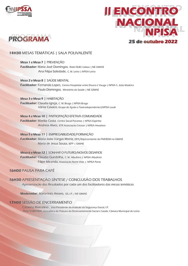 II Encontro Nacional dos NPISA, dia 25 de Outubro de 2022 no Teatro Miguel Franco em Leiria. Transmissão em direto no Facebook do Município de Leiria