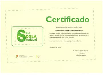 A Instituição Florinhas do Vouga foi distinguida com o Selo Escola Saudável – nível intermédio, pela Direção-Geral da Educação, no âmbito do Programa de Apoio à Promoção e Educação para a Saúde (PAPES). Trata-se de uma iniciativa que reconhece o trabalho realizado no âmbito da promoção da saúde e do bem-estar da comunidade educativa.